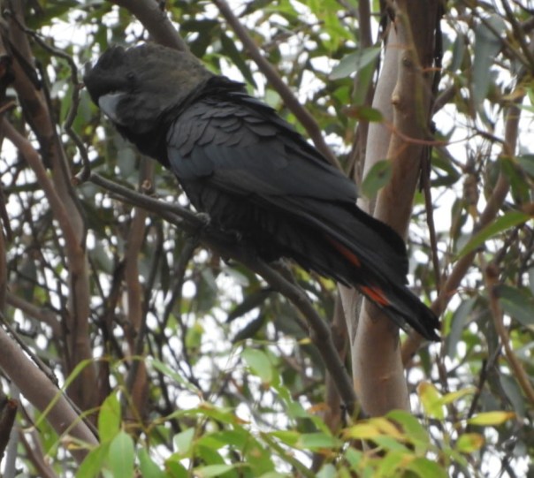 Quite exciting! According to my bird book, this bird is reasonably uncommon, perhaps declining. It’s a Glossy Black-Cockatoo, and I saw three of them for the first time ever this morning.
