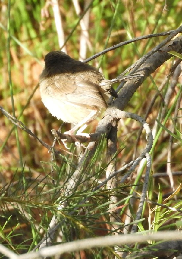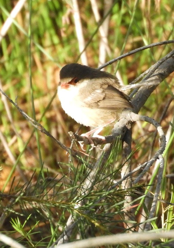 I spotted this bird at Manly Dam this morning. It’s a female Variegated Fairy-wren, cunningly positioned half in shadow to give itself a dark grey hood. I was excited, thinking I may have found a very unusual bird, until I realised what was happening!
