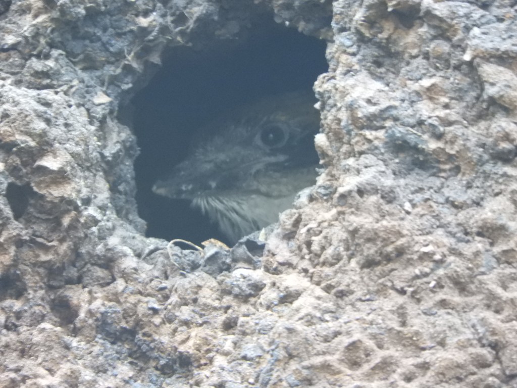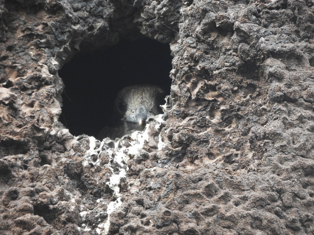 When the parents were not around, the chick eyed me from the safety of its home. The smallest scuffle was enough to bring an inquisitive eye to the hole in the nest: