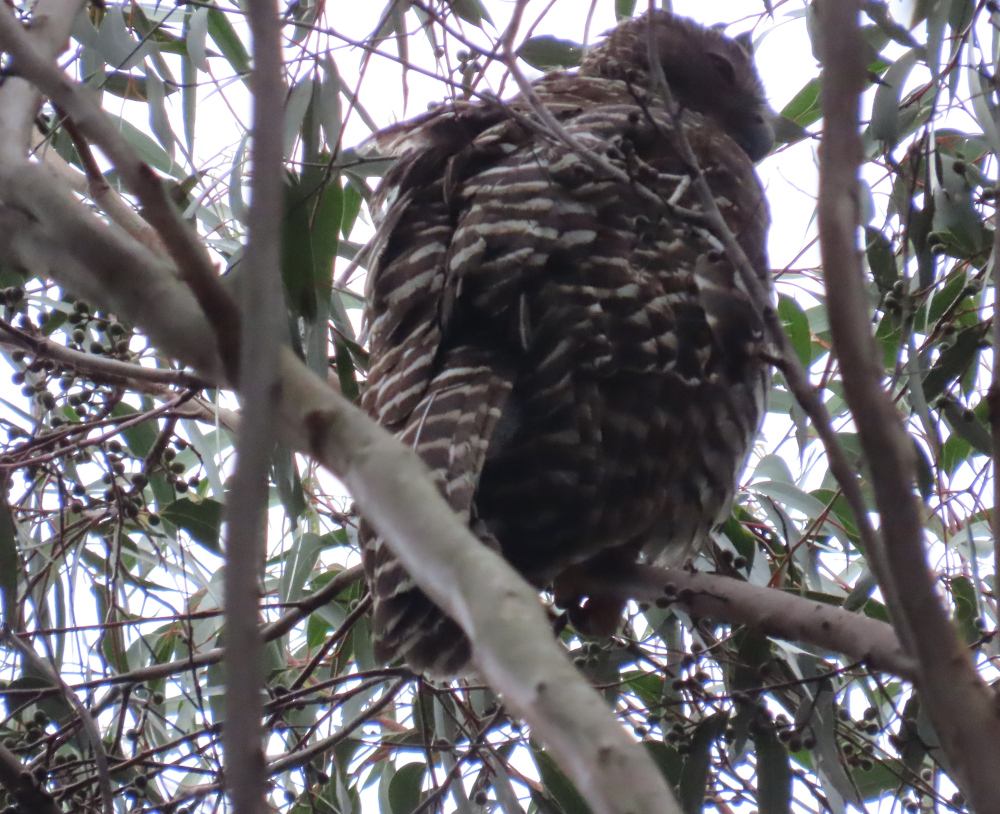 It’s always a privilege to see these impressive birds. Powerful Owls can weigh well over 2 kilograms, and reach up to 65 centimetres in height. They hunt at night and roost quietly during the day. Their prey consists of small creatures such as possums.