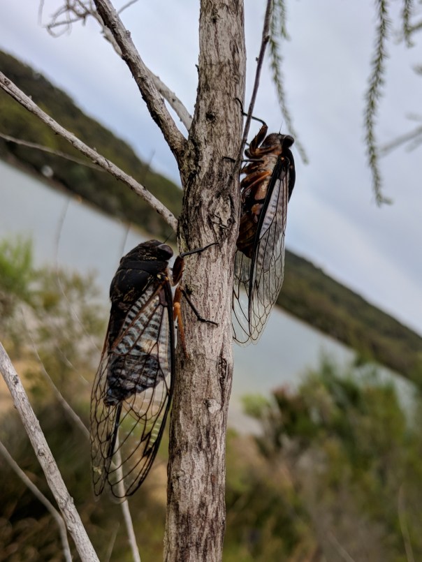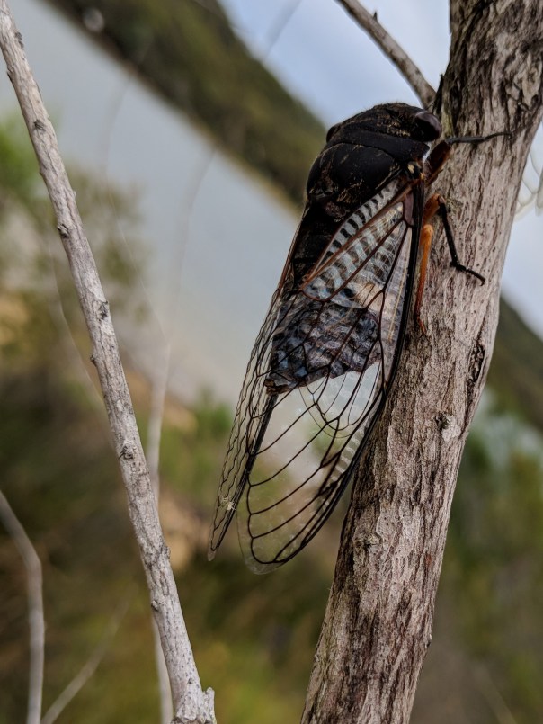 The cicadas are out in full force this summer. A week ago, while walking in the bush on a hot morning, I was suddenly doused in spray of cool drops from the trees above. It seems cicadas do pee. Copiously. A quick check of the internet assured me the spray is harmless. You can basically view it as sugar water that’s passed through a cicada.