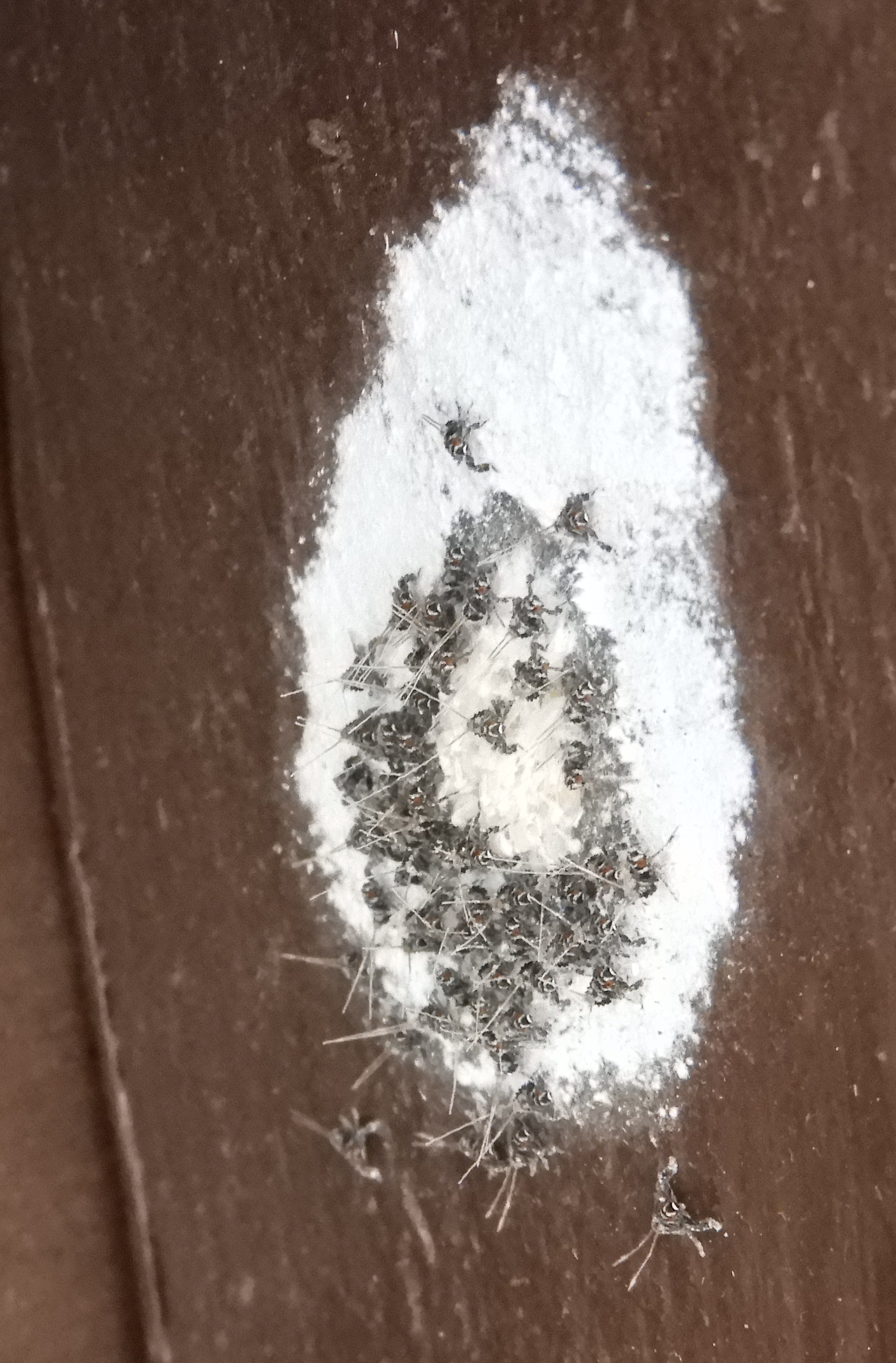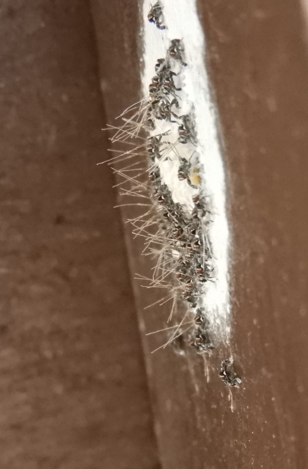 Tens of tiny little bugs hatched from the egg sack. Each bug is minute – just a millimetre or two long. Too small for me to see properly with the naked eye. The above image is zoomed in.