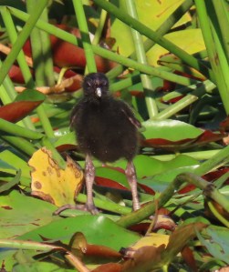 But where is her brother? Another tiny little Purple Swamphen is lost amongst the reeds! It’s hard to see how such a tiny thing can find his way back to his mother and sister, so far away among the giant lily pads: