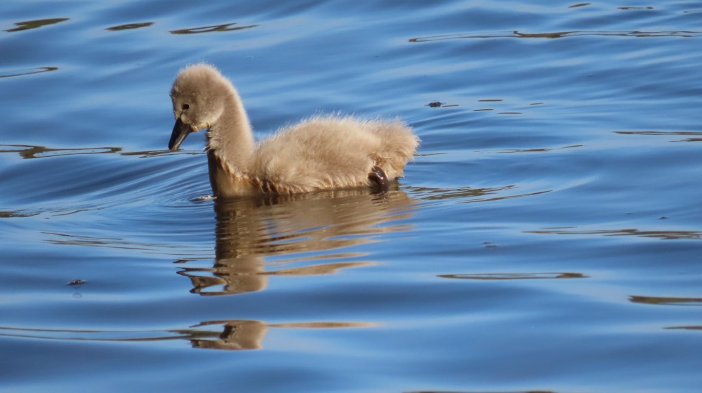 I don’t know how many eggs there were in the brood, nor how many of them hatched. Alas, baby swans are prey to several natural predators, especially hawks and eagles, as well as to introduced animals like dogs, cats, and foxes.